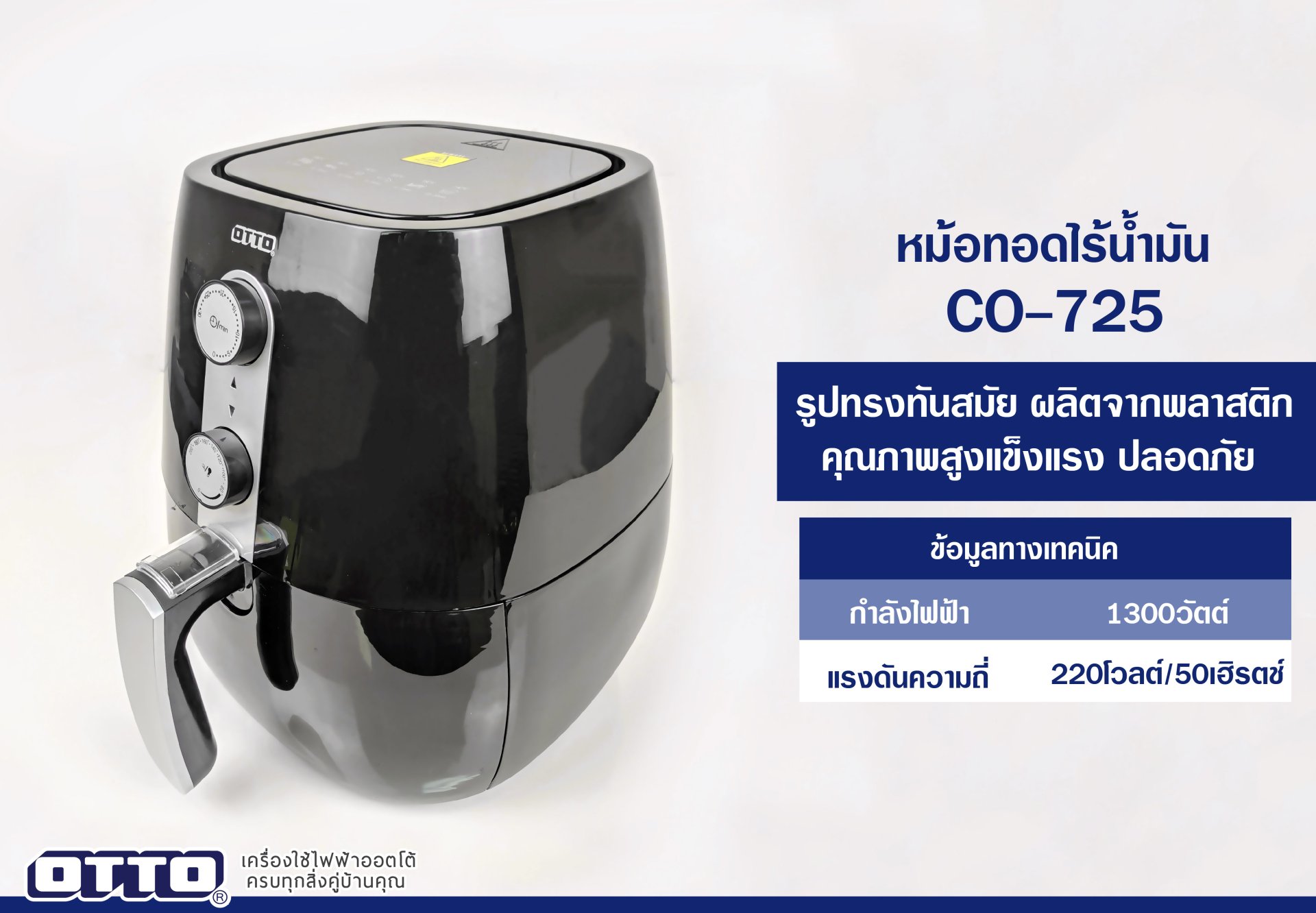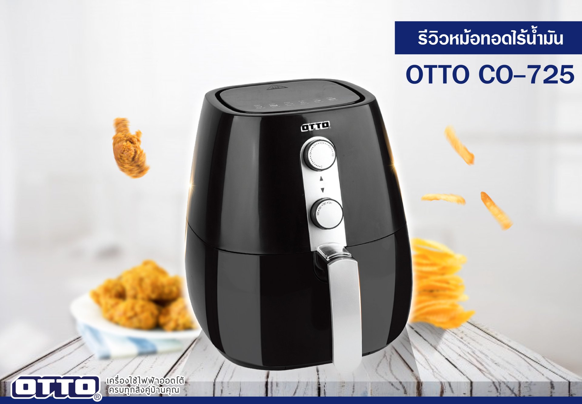 OTTO ขอแนะนำหม้อทอดไร้น้ำมัน รุ่น CO – 725 หม้อทอดไร้น้ำมันที่จะช่วยรีดน้ำมันออกจากอาหารได้สูงถึง 60% เพียงเท่านี้ก็ทั้งอร่อยทั้งอวดหุ่นสวยได้แล้วสินะ
