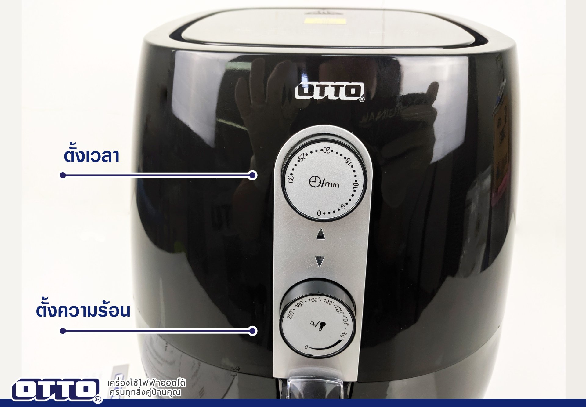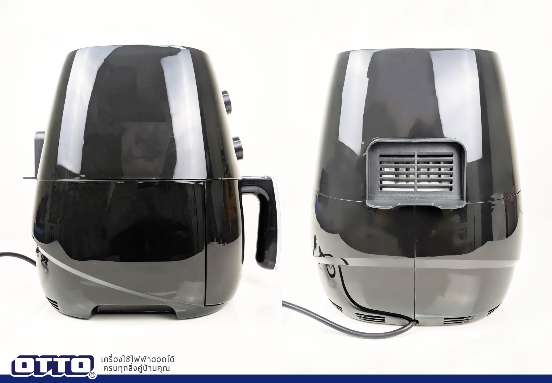 ตัวหม้อทอดไร้น้ำมันผลิตจากพลาสติกคุณภาพสูงสีดำเงา สวยงามทันสมัย