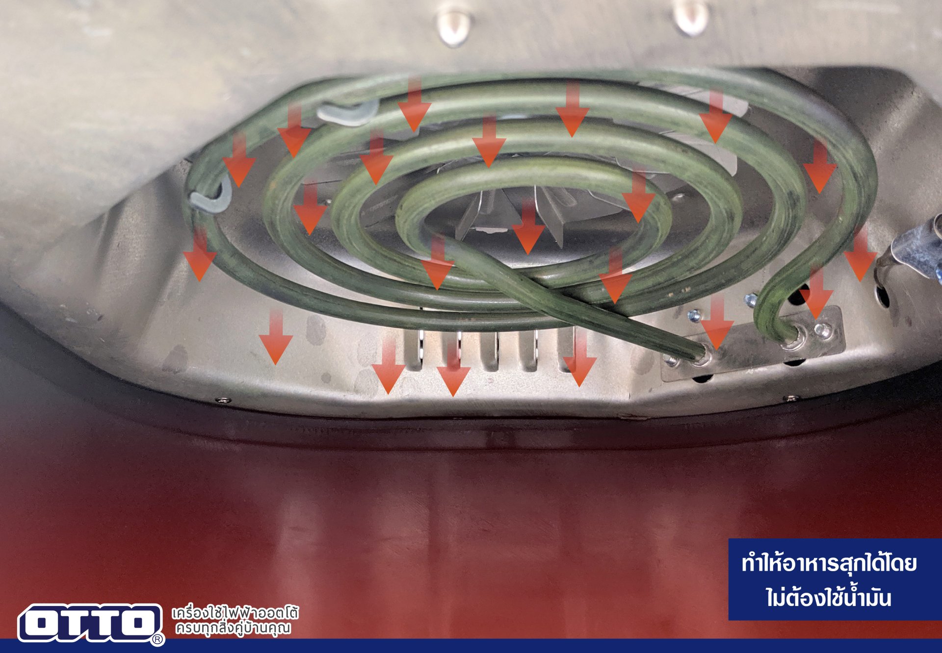 และด้วยการใช้ลมร้อนในการทำให้อาหารสุกจึงรีดน้ำมันออกจากอาหารได้มากถึง 60%