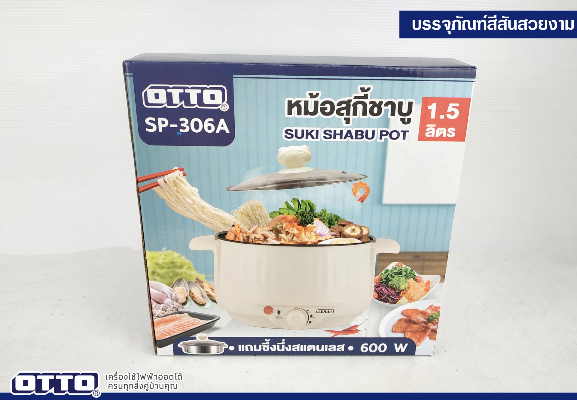 ตั้งที่แล้วเราได้แนะนำหม้อสุกี้ชาบู ขนาดจุใจ 3 ลิตรกันไปแล้วครั้งหนึ่งแต่ลูกค้าบางคนบอกว่าใหญ่เกินไปงั้น ครั้งนี้เราขอแนะนำหม้อชาบูขนาดกระทัดรัดเหมาะกับชาวเด้กหอ เด็กคอนโด กันบ้างแล้วกันนะครับ กับ OTTO SP-306A หม้อชาบูขนาดย่อมความจุ 1.5 ลิตรที่ทั้งหน้าตาทั้งรูปลักษณ์เหมือนกับรุ่นพี่อย่างกับแกะกันมาเลย