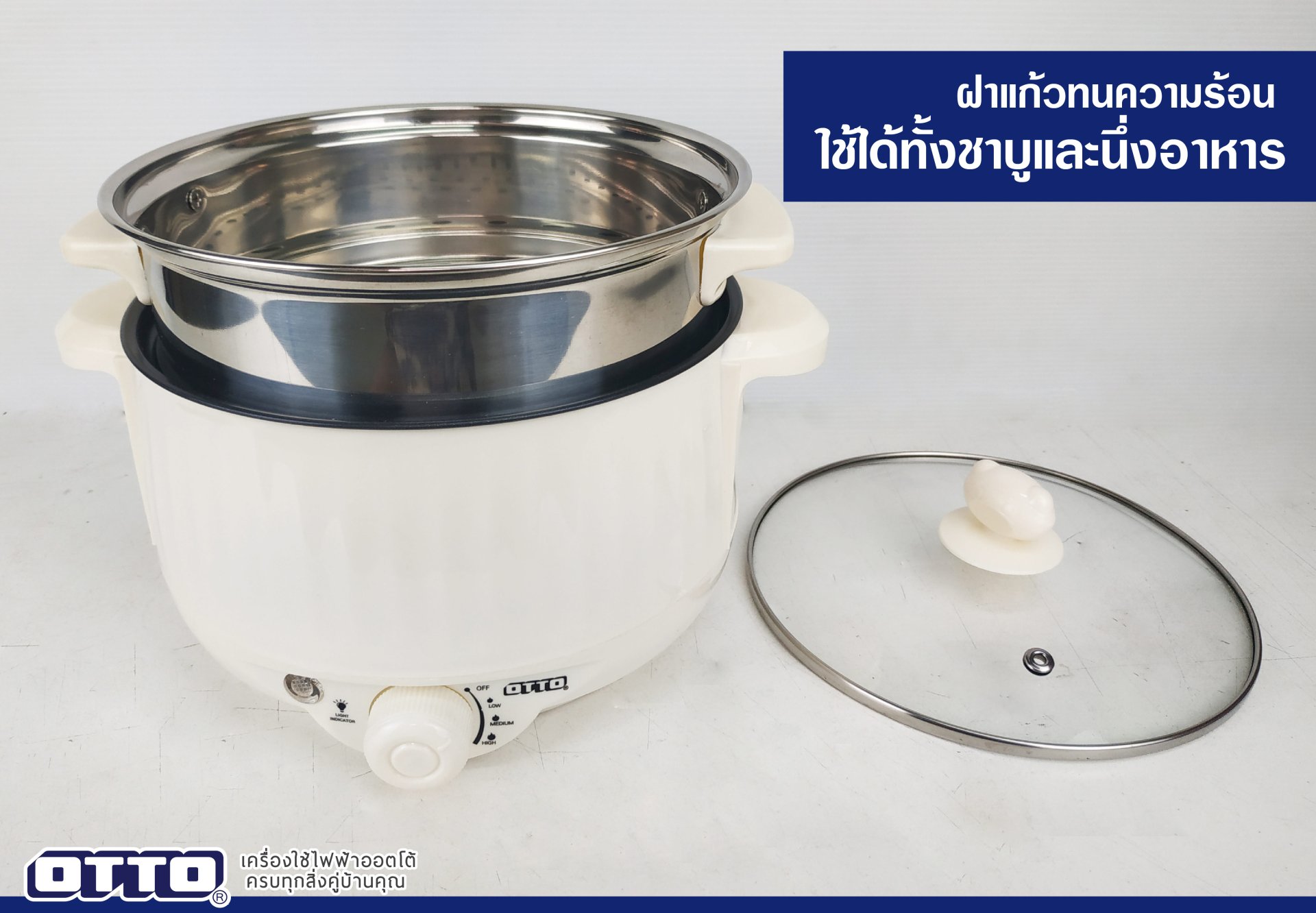 ทำอาหารได้หลากหลายทั้งต้มทั้งนึ่งมาพร้อมฝาแก้วทนความร้อน