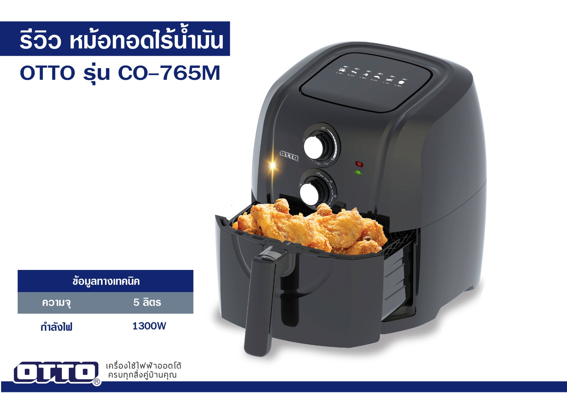 ยังคงฮิตติดลมบนไม่เลิกกับหม้ออบลมร้อน ครั้งนี้ขอมาแนะนำเพิ่มอีกรุ่นนะครับ กับรุ่นใหญ่ CO-765M ที่มาพร้อมขนาดความจุ 5 ลิตรต่อให้ใส่ไก่ลงไปทั้งตัวก็ยังไหว